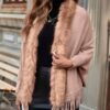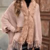 Crafted from a wonderfully soft knit, this poncho drapes effortlessly over any outfit. The standout feature is the ultra-plush, premium faux fur trim that lines the entire open front, adding a touch of instant glamour and warmth. A playful tassel fringe along the hem completes the bohemian-inspired look, giving it beautiful movement as you walk.