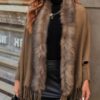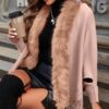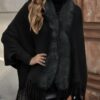 Faux Fur Trim Open Front Poncho with Fringe